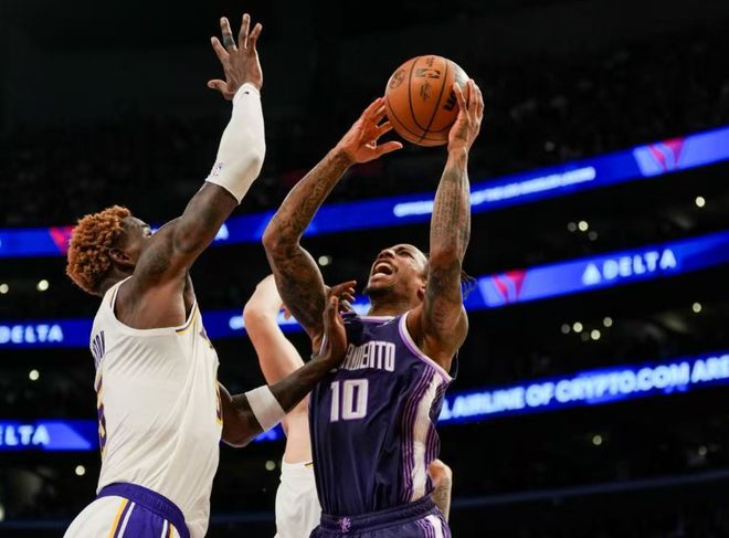 回顧一下比賽,開場詹姆斯就突破上反籃,東契奇單打+老詹空切和反擊炸扣,湖人開局勢頭很猛,而國王就依靠德羅贊連拿6分回應(yīng)。中段威少突然命中三分,隨后連續(xù)喂餅雷諾和德羅贊,威少繼續(xù)順下上籃,湖人則依靠東契奇單打守住微弱領(lǐng)先優(yōu)勢。后半段老詹帶銜接段,尼克史密斯和拉拉維亞多點開花,老詹也命中三分,第一節(jié)湖人30-24國王。進入第二節(jié),蒙克下三分雨追分,湖人替補今天突然爆發(fā),尼克史密斯和范德比爾特接連下三分雨,拉拉維亞突破,湖人頂住了國王反撲壓力。