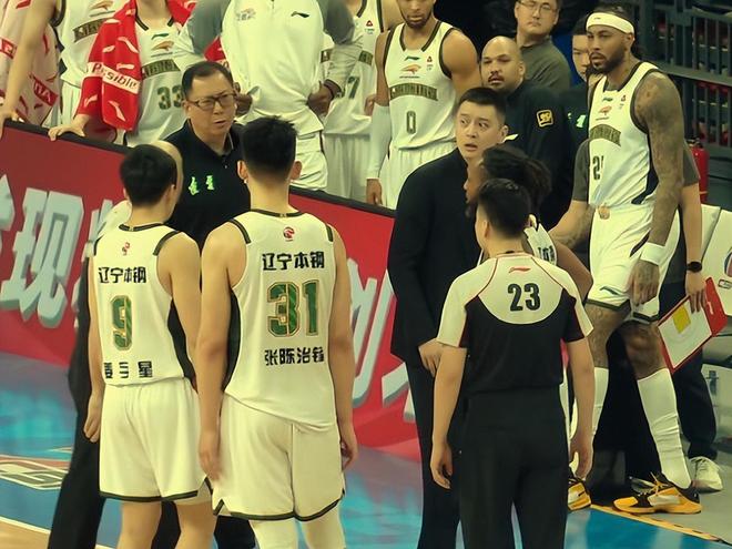 暫?;貋砩钲谶€了遼籃一波7-0,分差再次被拉開,楊鳴不得不再次叫暫停。